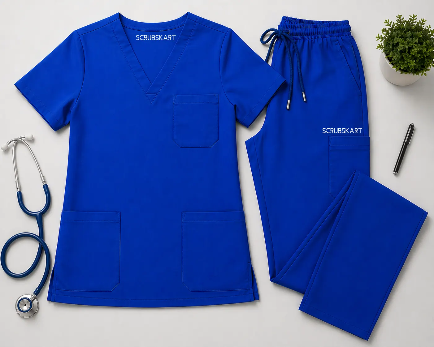Women Scrub Set -New Royal Blue-V Collar